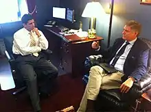 He has also met democrat representatives, such as congressman Albio Sires and congresswoman Debbie Wasserman-Schultz, a number of Presidents of the Democratic National Committee, and with some advisors of the President Obama such as Rick Holtzapple (who was Head of European Affairs of the White House), Mike Froman (Obama’s advisor for security affairs) and Miriam Sapiro (Responsible for commerce affairs at the Obama´s Administration).[1] In 2016, he attended the Democratic National Convention in Philadelphia witnessing the nomination of Hillary Clinton.[2]
