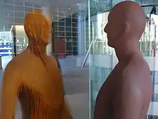 In 2012, Gormley began making sculptures that could be termed as "digital-cubism".[15] Through solid steel cubes the human form is rendered into an array of different postures and poses, boldly standing in a white gallery space.