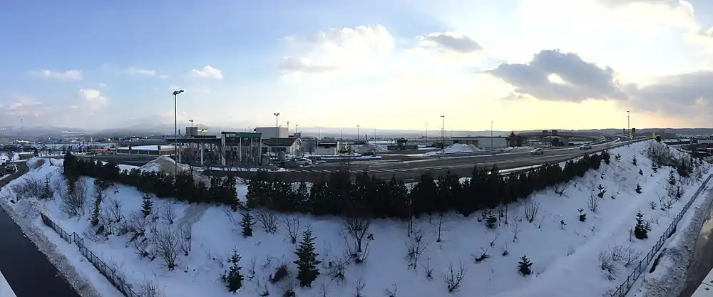 Toll booths are located along Aomori Expressway and at the converging point of the interchange's ramps.