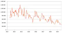 Difficulties maintaining a sufficient number of contributors to keep the project viable have persisted for several years. In January 2015 the project reported a lack of active developers and code contributions.[8] There have been continual problems providing timely fixes to security vulnerabilities since 2015.[9][10][11][12] Downloads of the software peaked in 2013 with an average of just under 148,000 per day compared to about 50,000 in 2019 and 2020.[13]