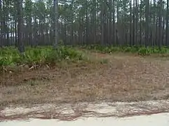 The Apalachicola National Forest is in the southeastern conifer forests ecoregion. Areas of the national forest with dry, sandy soils support Florida longleaf pine sandhills and east Gulf coastal plain near-coast pine flatwoods. Sandhills are woodlands dominated by longleaf pine (Pinus palustris). Pine flatwoods are forests and woodlands on broad, sandy flatlands. Both of these pine communities are sustained by frequent fires.[7]