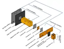 The thermocouples/unicouples attached to the outer shell consist of a SiGe alloy n-leg doped with boron and a SiGe p-leg doped with phosphorus to provide thermoelectric polarity to the couple.[6][12] The electrical and thermal currents of the system are separated by bonding the SiGe alloy thermocouple to a multifoil cold stack assembly of molybdenum, tungsten, stainless steel, copper, and alumina components.[12] Several layers of Astroquartz silica fiber yarn electrically insulate the legs of the SiGe thermocouples. In between the inner insulation system and the outer shell, copper connectors form the electrical circuit, which uses a two-string, series-parallel wiring design to connect the unicouples. The circuit loop arrangement minimizes the net magnetic field of the generator.[12]