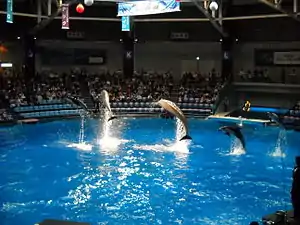 It is a very popular aquarium in the city center, and the annual number of visitors exceeds 1.5 million every year. The stadium has 1,350 seats, and there are shows by Pacific white-sided dolphins, bottlenose dolphins, and false killer whales that make full use of technology such as water curtains. [14] [15]