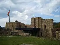 The tower varied in shape: square, rectangular (the tower in Cherven), circular, oval, triangular, horseshoe-shaped or with irregular shape. Depending on their position and functions they were: entrance, defense, edge or water towers. The later were towers-wells, located in the immediate vicinity of a river in such a way that their foundations soaked up water. The immense fortress Tsarevets in Tarnovo had such water towers. They could be reached by vertical walls from the main stronghold with secret galleries. They were extremely useful during long sieges. In the most difficult place to access in the fortress stood the citadel: a separate rampart in case the outer areas were overrun by the enemy. Examples of such citadels can be found in the castles of Shumen, Lovech, Cherven, Ohrid, Devol[2] and others. As an additional defense some castles had water-filled moats. A fine example of this is Baba Vida in Vidin.