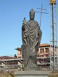The tomb of Aribert is located in the first span of the right aisle of Milan Cathedral.[7] The archbishop's sarcophagus is surmounted by a copy of the famous crucifix in gilded copper foil (the original is located in the museum of Milan Cathedral) originally donated by Aribert to the monastery of San Dionigi, a convent which was later demolished in 1783.[8]