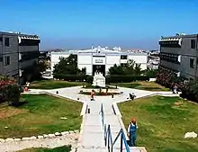 Ariel's jurisdiction spans 14,677 dunams (14.677 km2; 5.667 sq mi),[6] and borders the Palestinian towns and villages Salfit, Marda and Iskaka. Ariel's municipal area contains several enclaves of privately owned Palestinian land, whose owners are not allowed access to them.[7] The central water pumping station in Salfit has been polluted several times by overflow from the wastewater in Ariel.[7]