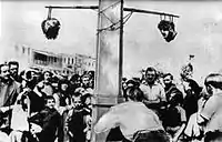 The corpses of Velouchiotis and Tzavellas were subsequently decapitated, and the heads displayed (a practice of the pre-war Greek State and Police for the common mountain bandits), hanging from a lamp post in the central square of the town of Trikala.
