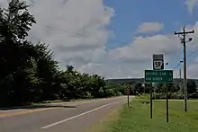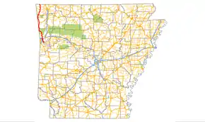 Arkansas Highway 59 is a north–south state highway in Northwest Arkansas. The route runs 93.24 miles (150.06 km) from Arkansas Highway 22 in Barling north to the Missouri state line through Van Buren, the county seat of Crawford County.[2] Highway 59 parallels US 59 (in Oklahoma) between Siloam Springs and Fort Smith. Since US 59 goes through Arkansas, AR 59 is the only Arkansas state highway to share its numbering with a federal highway that goes through Arkansas.