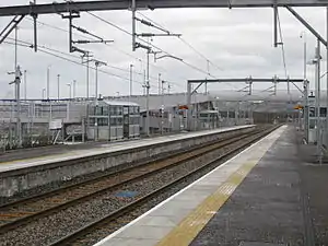 The station was reopened as part of the Airdrie-Bathgate Rail Link,[5] a project created to enable Glasgow and Edinburgh to be linked via a fourth route by reopening the railway between Airdrie and Bathgate. The very severe winter weather of November and December 2010 delayed completion of construction work, and the station was initially served by a replacement bus service. The station was reopened on 4 March 2011.[3]