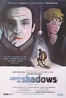 Army of Shadows (French: L'armée des ombres; Italian: L'armata degli eroi) is a 1969 World War II suspense-drama film written and directed by Jean-Pierre Melville, and starring Lino Ventura, Simone Signoret, Paul Meurisse and Jean-Pierre Cassel. The French-Italian co-production is a film adaptation of Joseph Kessel's 1943 book of the same name, which mixes Kessel's experiences as a member of the French Resistance with fictional versions of other Resistance members.