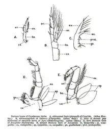 - Geoff A. Boxshall & Damià Jaume (2009). "Exopodites, Epipodies and Gills in Crustaceans" (PDF). Arthropod Systematics & Phylogeny. Museum für Tierkunde Dresden. 67 (2): 229–254. Archived from the original (PDF) on 2019-04-26. Retrieved 2012-01-14.