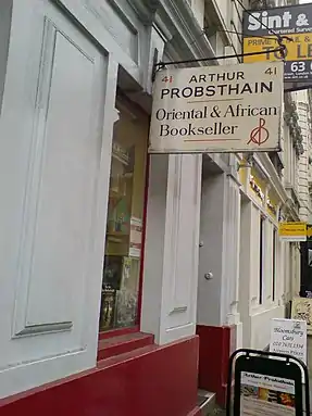 The bookstore was started in 1903 by Arthur Probsthain at Bury Place, and now bears his name.[2][3] It has been located at 41 Great Russell Street, opposite the British Museum, since 1905.[2][3]