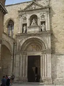 - San Francesco: gothic style church begun in 1258. The dome was completed in 1549. A monument to Pope Julius II is in the side portal, while the central portal is one of the finest examples of local travertine decoration. Adjacent to the church is the 16th-century Loggia dei Mercanti, in Bramantesque style of the Roman High Renaissance.