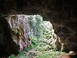 There is evidence that the cave has been used for shelter by humans since the Bronze Age, and several pottery fragments of that era have been found just inside the natural entrance.[1]