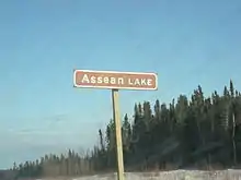 Assean Lake sign in Manitoba.