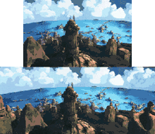 At the time of its release, Atlantis: The Lost Empire was notable for using more computer-generated imagery (CGI) than any other Disney traditionally animated feature. To increase productivity, the directors had the digital artists work with the traditional animators throughout the production. Several important scenes required heavy use of digital animation: the Leviathan, the Ulysses submarine and sub-pods, the Heart of Atlantis, and the Stone Giants.[56] During production, after Matt Codd and Jim Martin designed the Ulysses on paper, Greg Aronowitz was hired to build a scale model of the submarine, to be used as a reference for drawing the 3D Ulysses.[55] The final film included 362 digital-effects shots, and computer programs were used to seamlessly join the 2D and 3D artwork.[57] One scene that took advantage of this was the "sub-drop" scene, where the 3D Ulysses was dropped from its docking bay into the water. As the camera floated toward it, a 2D Milo was drawn to appear inside, tracking the camera. The crew noted that it was challenging to keep the audience from noticing the difference between the 2D and 3D drawings when they were merged.[58] The digital production also gave the directors a unique "virtual camera" for complicated shots within the film. With the ability to operate in the z-plane, this camera moved through a digital wire-frame set; the background and details were later hand-drawn over the wire frames. This was used in the opening flight scene through Atlantis and the submarine chase through the undersea cavern with the Leviathan in pursuit.[59]