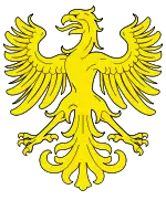 In heraldry, an attitude is the position in which an animal, bird, fish, human or human-like being is emblazoned as a charge, supporter or crest. Many attitudes apply only to predatory beasts and are exemplified by the beast most frequently found in heraldry—the lion. Some other terms apply only to docile animals, such as the doe (usually blazoned as "hind"). Other attitudes, such as volant, describe the positions of birds, mostly exemplified by the bird most frequently found in heraldry—the eagle.[1] The term naiant (swimming), however, is usually reserved for fish but may also apply to swans, ducks or geese. Birds are often further described by the exact position of their wings. The term segreant is usually applied to the griffin, but this approximation of rampant which is more appropriate for them has also been applied to the dragon.