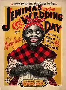 A character named "Aunt Jemima" appeared on the stage in Washington, D.C., as early as 1864.[15] Rutt's inspiration for Aunt Jemima was Billy Kersands' American-style minstrelsy/vaudeville song "Old Aunt Jemima", written in 1875. Rutt reportedly saw a minstrel show featuring the "Old Aunt Jemima" song in the fall of 1889, presented by blackface performers identified by Arthur F. Marquette as "Baker & Farrell".[2] Marquette recounts that the actor playing Aunt Jemima wore an apron and kerchief.[2][14]