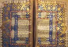 Aurangzeb was noted for his religious piety; he memorized the entire Quran, studied hadiths and stringently observed the rituals of Islam.[19][20] Unlike his predecessors, including his father Shah Jahan, Aurangzeb considered the royal treasury to be held in trust for the citizens of his empire.[20][21] He did not enjoy a luxurious life and his personal expenses and constructions of small mosques were covered by his own earnings, which included the sewing of caps and trade of his written copies of the Quran.[22][23] He also patronized works of Islamic and Arabic calligraphy.[24]