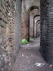 An interior view of the Aurelian walls near Porta San Sebastiano.