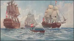 The success of the Dutch, British and French East India Companies throughout the 17th and early 18th centuries however led the merchants and shipowners of Ostend to want to establish direct commercial relations with the East Indies.[12] In December 1722, Charles VI granted a 30-year charter to the Ostend Company to conduct trade with the East and West Indies, as well as Africa.[13] The Ostend Company proved to be immensely profitable, and between 1724 and 1732, 21 company vessels were sent out to conduct trade in the Caribbean, Africa, and especially Asia. The most profitable voyages of the Ostend Company were to Canton, as rising tea prices resulted in high profits for ships conducting trade with China. Between 1719 and 1728, the Ostend Company transported 7 million pounds of tea from China, roughly half of the total amount brought to western Europe at the time, placing the company on par in the tea trade with the East India Company.[14] The Ostend Company proved to be short lived however, as Charles VI suspended the charter of the company due to British diplomatic requests following the Treaty of Vienna, with the company ceasing operations in 1731.[14][13]