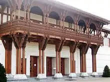 Adjoining the mandir is BAPS Shri Swaminarayan Haveli, a multi-function cultural centre. Whereas the mandir is carved from stone, the haveli is constructed from wood. English oak and Burmese teak have been fashioned into panels, arches and screens, all carved by craftsmen in India with a cornucopia of geometric patterns, stylised animal heads, and flower garlands.[4]