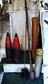 S.A.P. shells (left), cordite cartridge (lower right) and cartridge container (centre right) on HMS Belfast