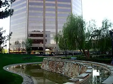 It was designed in the modern style by HKS, Inc. Originally, the tower was supposed to have a twin, rotated 90 degrees from the current tower, but due to the Savings and Loan Crisis of the 1980s and 1990s, the second tower was dropped. Today, the BMO Tower stands as one of Phoenix's most prominent skyscrapers. It is located across the street from the Phoenix Art Museum on Central Avenue just north of McDowell Road between Downtown Phoenix and Midtown Phoenix. The building features a large landscaped public park with many statues and fountains near the entrance. Completed in 1991, the BMO Tower was the last major skyscraper to be constructed in Midtown.