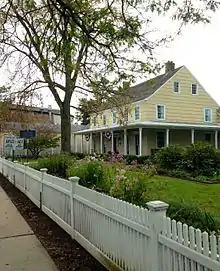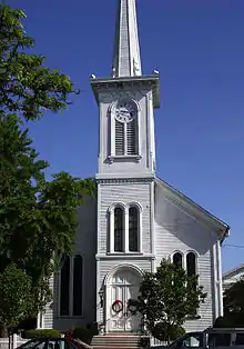Babylon had already been settled, as Huntington South, prior to hostilities with the British in the Revolutionary War. The First Presbyterian Church of Islip and Huntington South, as it was then known, was established in 1730.[4] Though the church would later be split into two separate Huntington South and Islip churches in 1857 (the former to be renamed the First Presbyterian Church of Babylon after 1872). However, long before this split, the First Presbyterian Church held services in the original wooden church until 1778 when British soldiers tore down the structure. The wood from the first church was taken west to Hempstead to construct a barracks for British troops. This event was more recent history when, on the eve of the War of 1812, Joshua Hartt gave a impassioned sermon encouraging the young men to defend the United States and prepare for a "righteous war."[5]