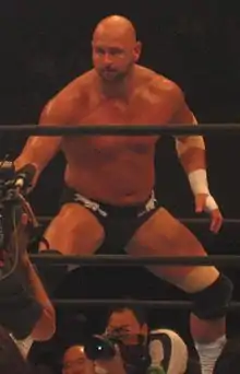 Giant Bernard and Karl Anderson first came together in New Japan Pro-Wrestling (NJPW), when Bernard, along with his Detonators tag team partner Rick Fuller turned on the RISE stable on September 5, 2008, and jumped to the villainous Great Bash Heel (GBH) stable by helping Togi Makabe and Toru Yano retain the IWGP Tag Team Championship against Hirooki Goto and Shinsuke Nakamura.[5] Bernard teamed with new GBH stablemate Anderson for the first time on October 20,[4] but the two did not become regular tag team partners until after the 2008 G1 Tag League, when Fuller left NJPW.[6][7] Anderson and Bernard represented GBH until April 5, 2009, when the entire stable, with the exception of Tomoaki Honma, turned on Togi Makabe and joined Shinsuke Nakamura to form the new Chaos stable.[8][9][10] As representatives of Chaos, Anderson and Bernard earned their first shot at the IWGP Tag Team Championship by defeating Tencozy (Hiroyoshi Tenzan and Satoshi Kojima) in a number one contender's match on May 3 at Wrestling Dontaku 2009.[11] They received their title shot on June 20 at Dominion 6.20, but were defeated by the defending champions, Team 3D (Brother Devon and Brother Ray), representatives of American promotion Total Nonstop Action Wrestling (TNA).[12] On October 17, Anderson and Bernard entered the 2009 G1 Tag League.[13] After a clean record of four wins and zero losses,[14] Anderson and Bernard advanced to the semifinals of the tournament, where, on November 1, they defeated Wild Child (Manabu Nakanishi and Takao Omori).[15] Later that same day, Anderson and Bernard defeated Apollo 55 (Prince Devitt and Ryusuke Taguchi) in the finals to win the tournament, after which Bernard declared war on Team 3D.[15][16] During the following day's press conference Anderson and Bernard reiterated their intention of defeating Team 3D for the IWGP Tag Team Championship, while also announcing their new tag team name, "Bad Intentions".[1] The title rematch between Bad Intentions and Team 3D took place on November 8 at Destruction '09 and ended in a double count-out, meaning that Team 3D retained the title.[17][18]