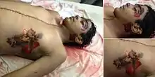On 9 April, human rights activist Abdulhadi al-Khawaja and his two sons-in-law were arrested.[164][165] His daughter Zainab who subsequently underwent a hunger strike to protest the arrests,[166] said al-Khawaja was bleeding after getting beaten unconscious during the arrest.[167] That month alone, four protesters had died due to torture in government custody including journalists Karim Fakhrawi and Zakariya Rashid Hassan al-Ashiri.[13]:430 The government initially denied such reports[166] and accused human rights activist Nabeel Rajab of fabricating photos, however a HRW researcher and a BBC reporter who had seen one body prior to burial stated they were accurate.[168][169] Five prison guards were subsequently charged with a protesters death.[170]