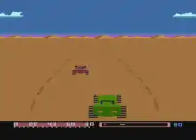 Baja Buggies is a desert-themed racing video game written by Dan Ugrin for the Atari 8-bit family.[1] It uses a third-person, 2.5D perspective. The game was originally developed and sold as Night Rally by Arcade Plus before the company folded, then it was revamped and published as the first release from Gamestar.[2] Gamestar went on to publish a series of sports games for the Atari 8-bit and Commodore 64, such as Star League Baseball, before becoming a label of Activision.