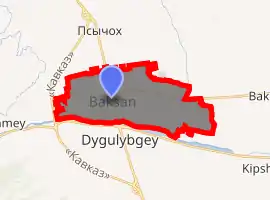 Within the framework of administrative divisions, Baksan serves as the administrative center of Baksansky District, even though it is not a part of it.[1] As an administrative division, it is, together with one rural locality (the selo of Dygulybgey), incorporated separately as the town of republic significance of Baksan—an administrative unit with the status equal to that of the districts.[1] As a municipal division, the town of republic significance of Baksan is incorporated as Baksan Urban Okrug.[5]