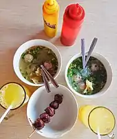 ![]() Bakso served with bihun (rice vermicelli) and fried wontons | |