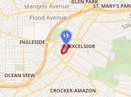 The school campus is located a few blocks away from major thoroughfares including Mission Street. The campus is close to Balboa Park, Balboa Park Station, and Interstate 280. San Francisco Municipal Railway transit lines J, K, M, 8X, 14, 14L, 14X, 26, 29, 43, 49, and 54 provide nearby service.