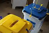 Clear sided ballot boxes used in the Haitian general election in 2006