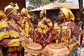 Young men wearing traditional Bamileke attire during a marriage ceremony