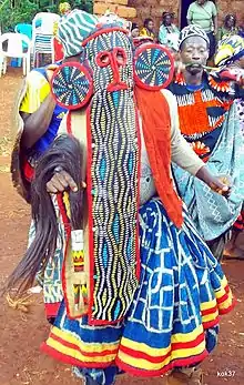 Masquerades are an integral part of Bamileke culture and expression. They are donned at special events such as funerals, important palace festivals and other royal ceremonies. The masks are performed by men and aim to support and enforce royal authority.[8]