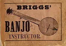 By the 1850s, aspiring banjo players had options to help them learn their instrument.[28] There were more teachers teaching banjo basics in the 1850s than there had been in the 1840s.[28] There were also instruction manuals and, for those who could read it, printed music in the manuals.[29] The first book of notated music was The Complete Preceptor by Elias Howe, published under the pseudonym Gumbo Chaff, consisting mainly of Christy's Minstrels tunes.[29] The first banjo method was the Briggs' Banjo instructor (1855) by Tom Briggs.[29] Other methods included Howe's New American Banjo School (1857), and Phil Rice's Method for the Banjo, With or Without a Master (1858).[29] These books taught the "stroke style" or "banjo style", similar to modern "frailing" or "clawhammer" styles.[29]