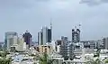 The Bank of Mauritius Tower (also known as Bank of Mauritius Building or Bank of Mauritius Headquarters) is a skyscraper in Port Louis, the capital of Mauritius, and a home to Bank of Mauritius. It is the tallest building of the country. When measured to roof, it stands at 98 m (321 ft)[4] and to pinnacle at 124 m (407 ft). The 16,834 m² reinforced concrete structure reached its final height in May 2006. The 22-storey building towers over the Citadel (a hill-top fortification in Port Louis) and is constructed in an area where highrises were once prohibited. It is also the second tallest structure in Mauritius after the much taller 183 m (600 ft) Bigara Station Transmitter (guyed mast) in the upper Plaines Wilhems.