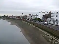 Some of the oldest riverside housing in London is to be found on the Terrace, a road lined with Georgian mansions which runs along the west bend of the river. Construction of these mansions began as early as 1720.[13] Gustav Holst and Ninette de Valois lived in houses on this stretch, both of which have corresponding blue plaques. The Terrace also has an original red brick police station, built in 1891. It has been remodelled as flats but still preserves the original features.