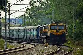 The train has standard ICF rakes with a max speed of 110 km/h. The train consists of 17 coaches: