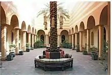In 1982, Al Bayati won the 1st prize in the King Saud Competition to build the main mosque for the university. His design incorporated extensively the motif of the palm trunk, as used in the very first Mosque of the Prophet in Medina. It was highly praised and was even claimed to "mark the beginning of a new era, a new revival in Islamic architecture."[20]
