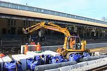 The station was modified in April 2017 for the Great Western Main Line electrification project. Because of its listed status, the platform canopies could not be cut back to fit overhead electrification equipment on the alignment and so the platforms were widened so that future electrification masts could be installed between the tracks. (Electrification through the station was deferred in November 2016). The work provided a larger circulation area and reduced the gap between train and platform.[15]