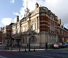 The building, designed in 1891 by E. W. Mountford,[1] opened in 1893 as Battersea Town Hall, the administrative headquarters of the Borough of Battersea, shortly after the borough was transferred from the county of Surrey to the newly formed County of London. It is built from Suffolk red brick and Bath stone.[1]