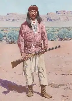 The Battle of Cibecue Creek was an engagement of the Apache Wars, fought in August 1881 between the United States and White Mountain Apaches in Arizona, at Cibecue Creek on the Fort Apache Indian Reservation. After an army expedition of scouts, U.S. Army soldiers 'arrested' a prominent Cibecue Apache medicine man named Nock-ay-det-klinne. The U.S. Army soldiers were taking Nock-ay-det-klinne back to the fort when they were ambushed by Apache warriors. During the conflict, the U.S. Army soldiers killed Nock-ay-det-klinne. Most of the 23 Apache scouts mutinied, in the largest such action of its kind in U.S. history. The soldiers retreated to Fort Apache. The following day, the White Mountain Apache mounted a counter-attack. The events sparked general unrest and led to White Mountain Apache warriors leaving the Fort Apache Indian Reservation to join forces with the Apache leader of the Bedonkohe band of Chiricahua Apache named Goyahkla, better known as Geronimo.