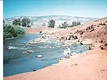 At this point Laverdure ordered one company of his Senegalese infantry to leave the column to accompany a convoy of wounded soldiers to Khénifra.[2][21] Many of his other troops, seeing the Senegalese leaving, broke ranks and followed in panic.[21] Laverdure attempted to continue his withdrawal but, just having crossed the Chbouka river, his rearguard was surrounded and attacked repeatedly from all sides, being quickly overrun.[2][21] The gun batteries soon suffered the same fate, their crews also being killed.[2] The Zaian assembled on the ridges surrounding the remaining French troops, who had formed a defensive square, before launching a final attack with "several thousand" men.[2][18][21] This attack lasted just a few minutes and, after a desperate struggle, the square was broken and the remainder of the column was wiped out.[2][18] The Zaian chased down and killed any of the survivors who attempted to hide in the scrub.[21]