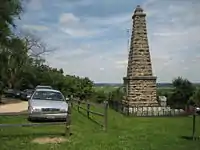 The battle site at Kellogg's Grove was listed on the U.S. National Register of Historic Places on June 23, 1978.[14] The listing included a 1½ acre public park where a stone monument and memorial cemetery is located. The cemetery holds the interred remains of the militia who died during both battles at Kellogg's Grove.[6] The men were initially buried in other spots around the grove but during the 1880s local farmers banded together to collect the remains of the Black Hawk War dead and inter them in one spot beneath a memorial.[6]