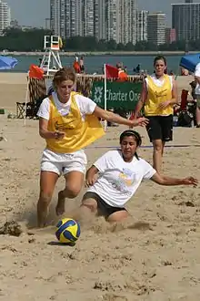 Beach soccer, also known as beach football, sand football or beasal, is a variant of association football played on a beach or some form of sand. The game emphasises skill, agility and accuracy in shooting at the goal.[2]