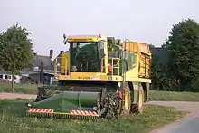 A bean harvester, also known as a bean thresher or bean combine, is a threshing machine which is used to harvest beans. It mainly consists of a pickup, several beaters, shakers, one or several fans, elevators, conveyor belts, a storage bin, and usually a spreader at the rear. Until recently, the only practical manufacturer of bean harvesters was The Bidwell Bean Thresher Company.